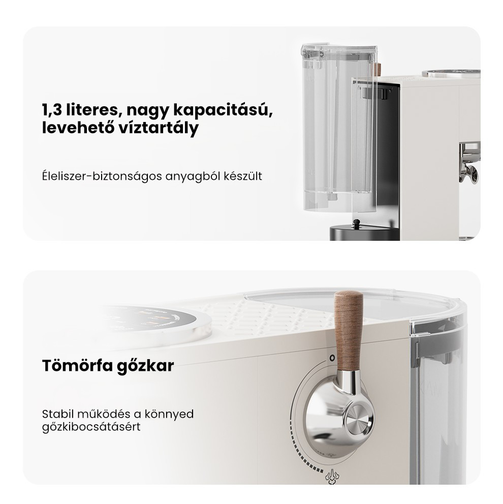 - Három gőzfokozat a tejhabosításhoz – kezdő, haladó és profi szint, hogy cappuccinója vagy lattéja mindig tökéletes legyen.
